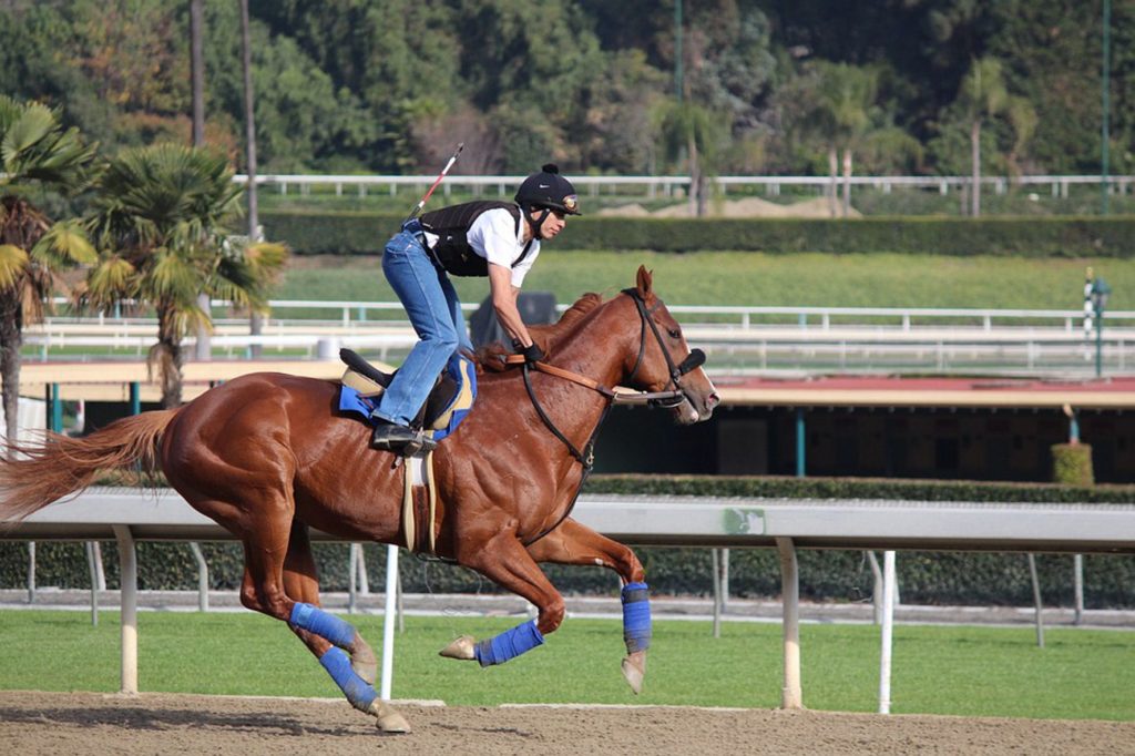 Een paard op een racebaan